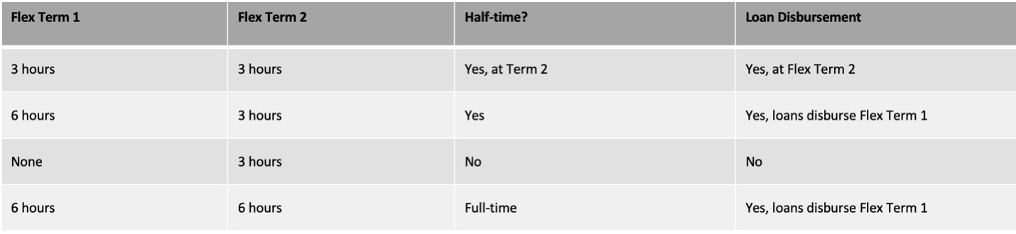- 유연 수업은 재정 지원에 부정적인 영향을 미치지 않습니다. 명심해야 할 몇 가지 사항은 학생들이 토토사이트 Flex I 학기 시작 시와 토토사이트 Flex II 학기 시작 시에 하나씩 총 2개의 별도 지불금을 받게 된다는 것입니다.
